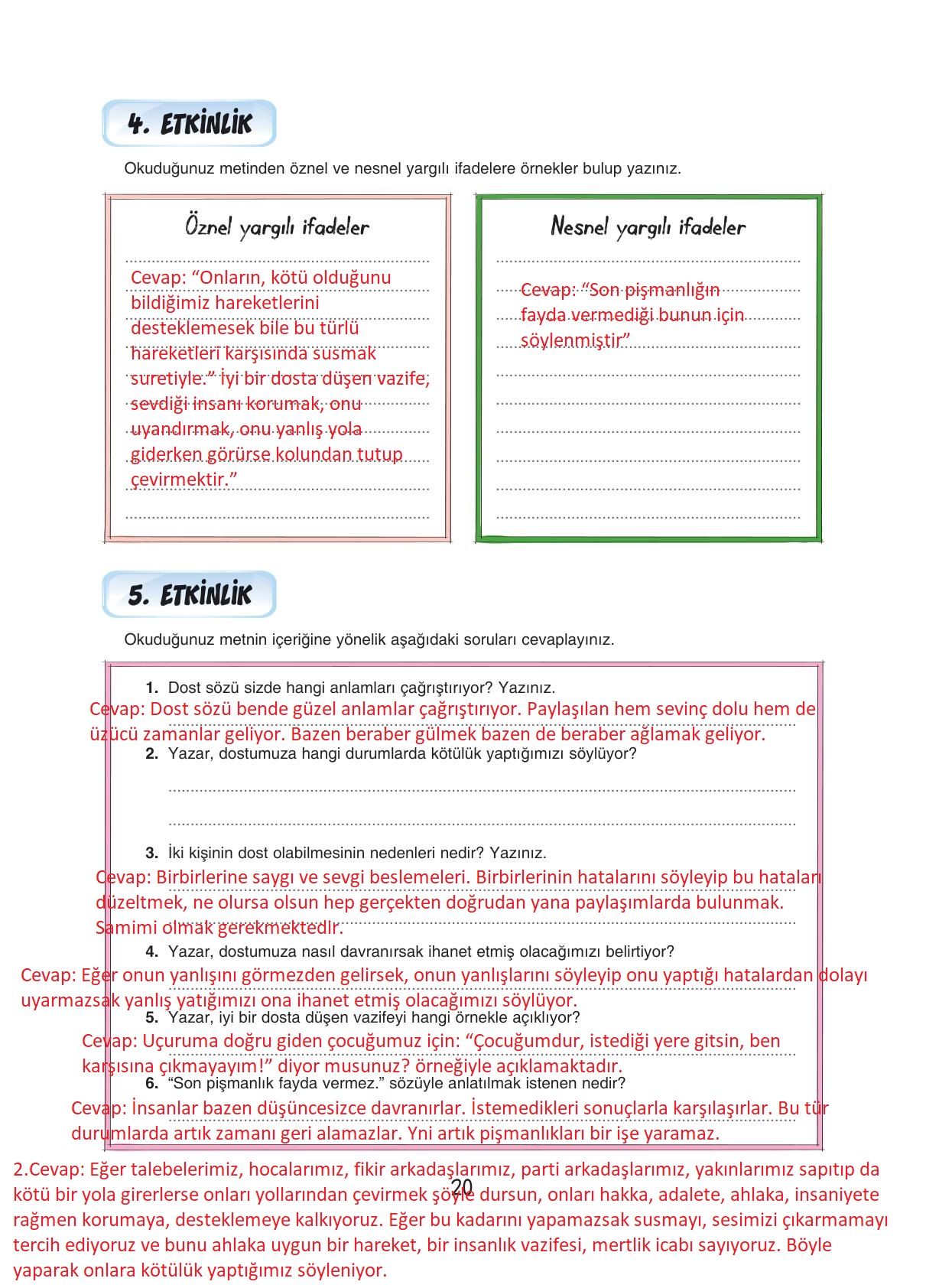 7. Sınıf Türkçe Ders Kitabı Dörtel Yayıncılık Sayfa 20 Cevapları