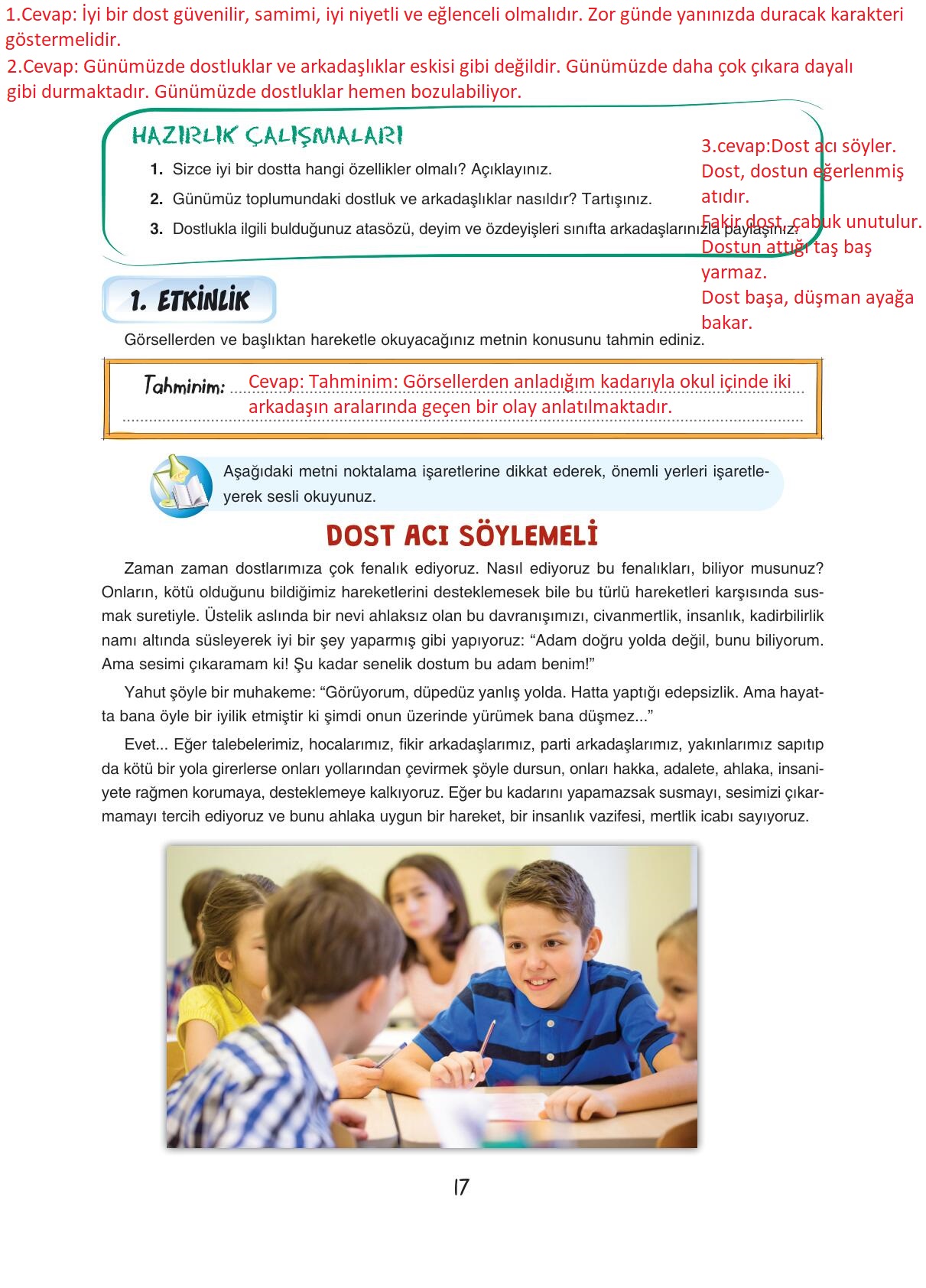 7. Sınıf Türkçe Ders Kitabı Dörtel Yayıncılık Sayfa 17 Cevapları